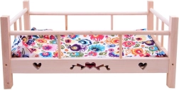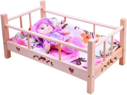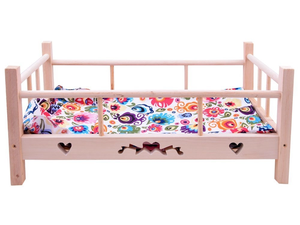 Herz- und Schmetterlingsausschnitte sowie erhöhte Seitenteile verleihen dem Bettchen Charme und stellen sicher, dass die Puppe beim Schlafen an ihrem Platz bleibt.
