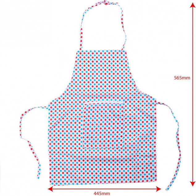 Die angenehme Schürze mit bunten Punkten schützt die Kleidung beim Spielen und beim echten Backen. Die verstellbare Mütze mit Klettverschluss passt sich dem Kopfumfang leicht an und sitzt den ganzen Tag bequem.