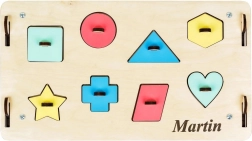 - Tafel, Einlegepuzzle, Reißverschlüsse, Klettverschluss, Touch-Lampe, Wecker, Tasten, motorische Elemente, Fenster und Türen