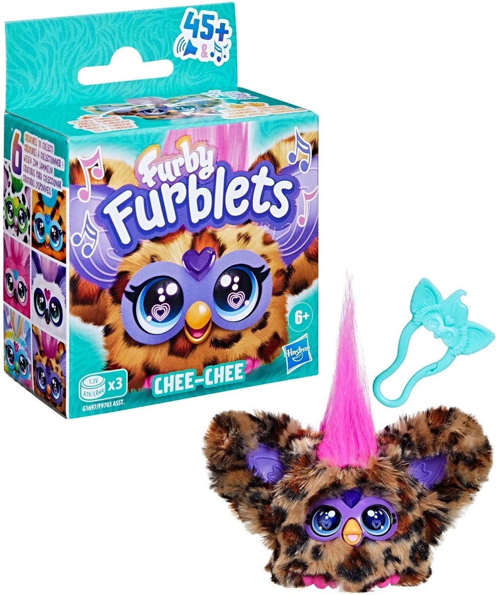 Furby Furblet Chee-Chee ist ein kleiner Plüschbegleiter mit großer Persönlichkeit. Er singt originelle Melodien, macht lustige Geräusche und begeistert mit seinem witzigen Ausdruck Kinder wie Erwachsene. Nehmen Sie ihn mit auf Reisen – der Clip ermöglicht das einfache Befestigen an Rucksack oder Handtasche.