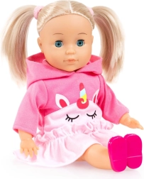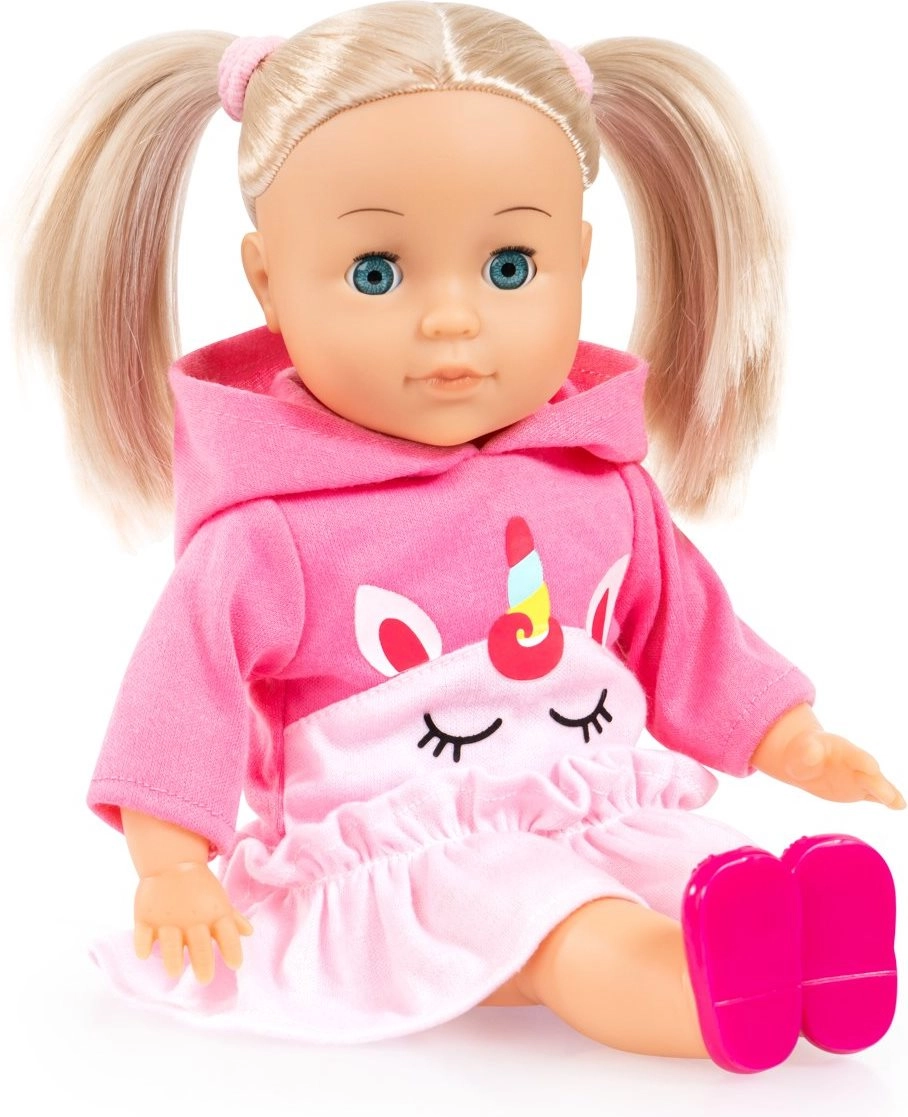 Puppe Emma ist eine tolle Freundin für jede kleine Betreuungsperson. Sie hat sanfte Gesichtszüge, lange blonde Haare und einen bequemen weichen Körper, der zum Kuscheln einlädt. Beim Drücken des Bauches spricht sie Tschechisch, singt und rezitiert – bis zu 100 verschiedene Sätze und Melodien für abwechslungsreiches Spielen und das Erlernen neuer Wörter.