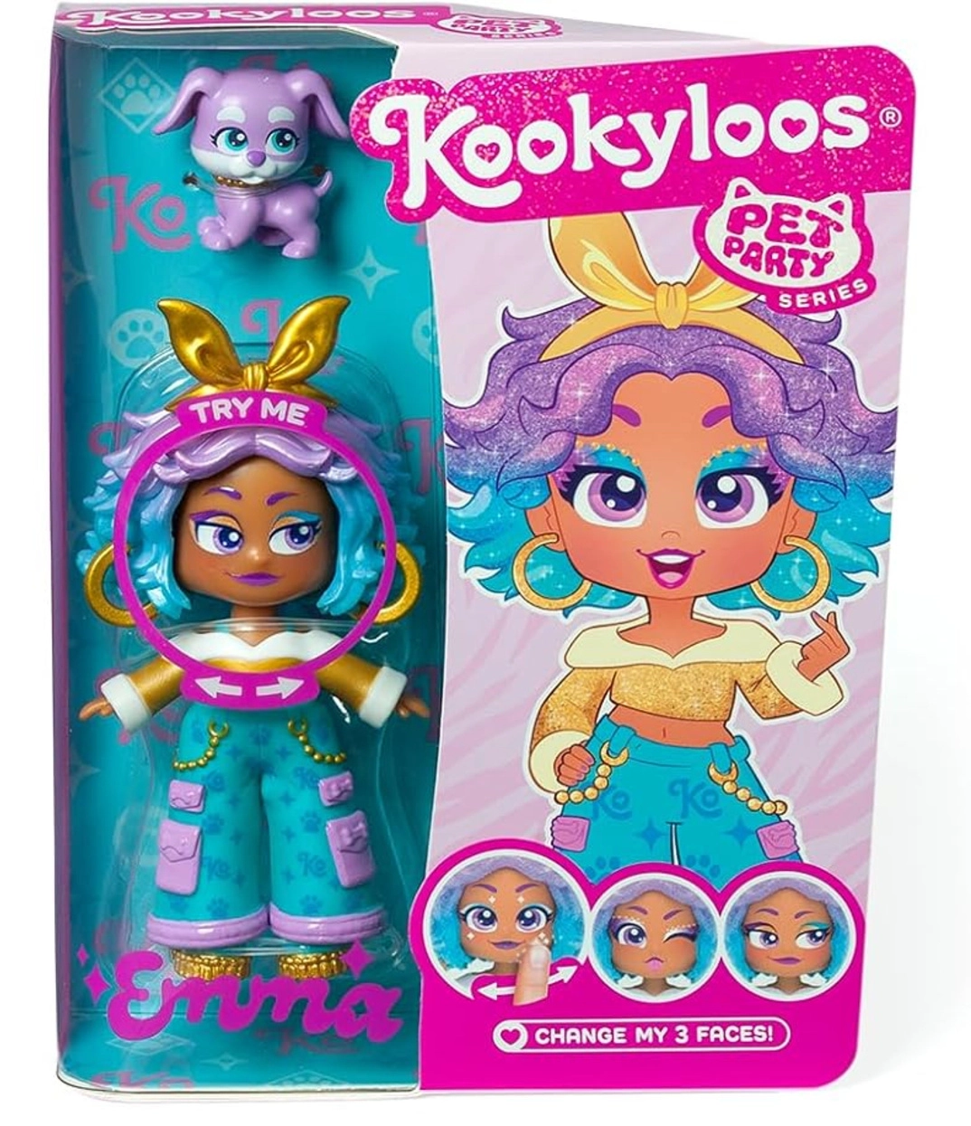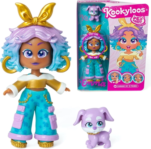 Entdecke die Welt von KookyLoos mit der Sammelfigur Emma – Pet Party. Die Figur hat ein charakteristisches Outfit, eine moderne Frisur und Accessoires, die zum Serienthema passen. Durch Drehen des Kopfes erhält Emma drei verschiedene Mimiken, sodass du Emotionen ausdrücken und eigene Geschichten erschaffen kannst.