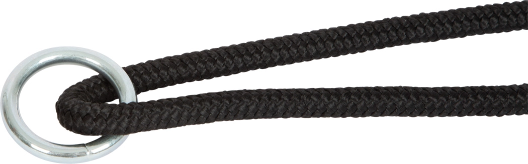 Das robuste schwarze Seil mit Kunststoffschieber und Metallring ermöglicht schnelles Auf- und Abhängen sowie eine präzise Einstellung der Höhe nach Bedarf.