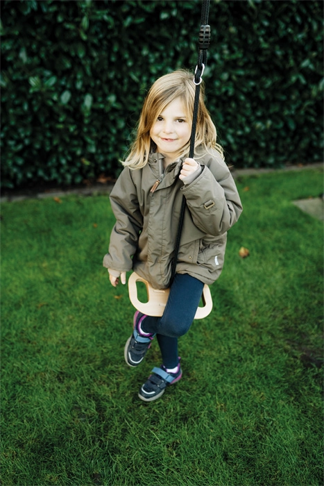Massivholz, hochwertiges synthetisches Seil und eine robuste Verarbeitung gewährleisten eine lange Lebensdauer und eine Traglast bis 100 kg für Kinder und Erwachsene.