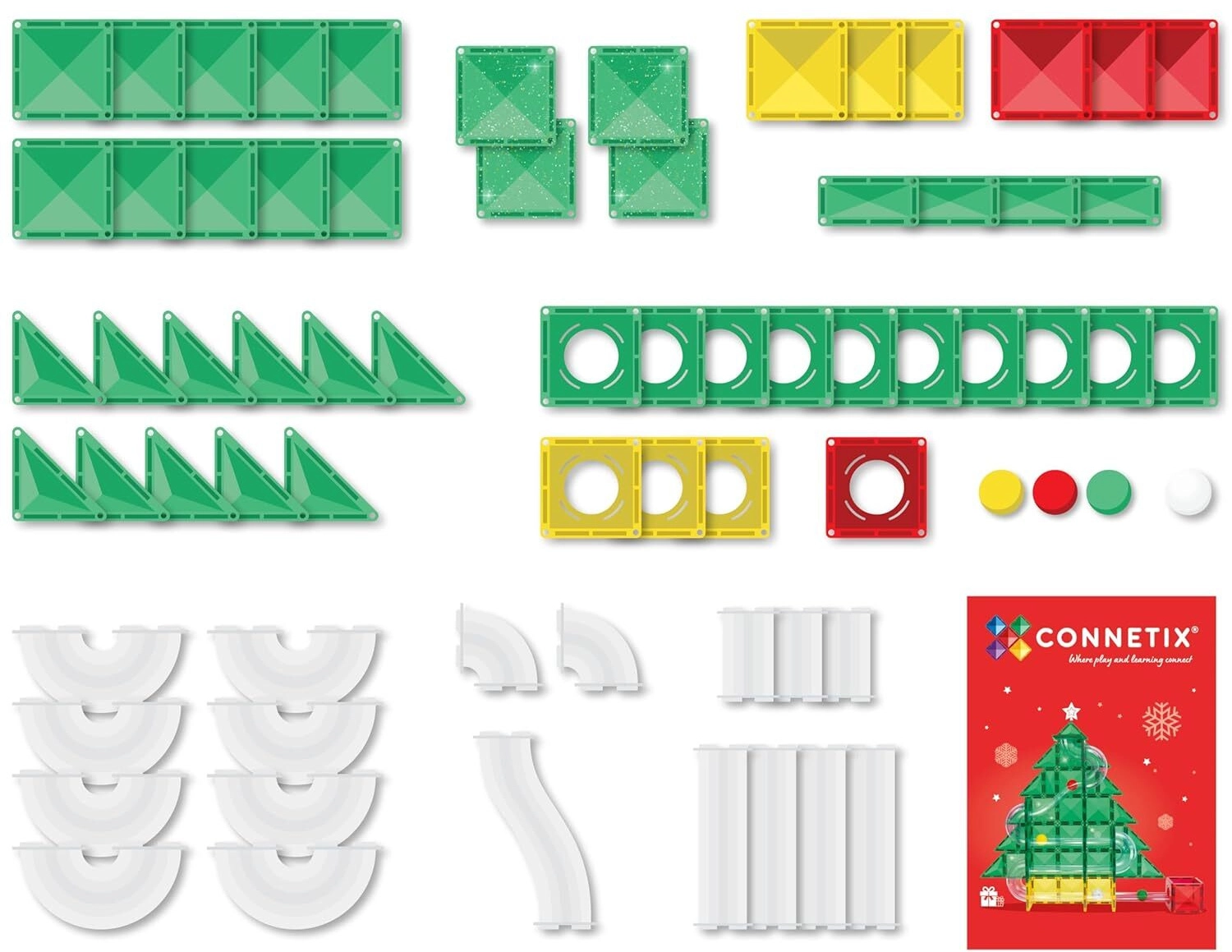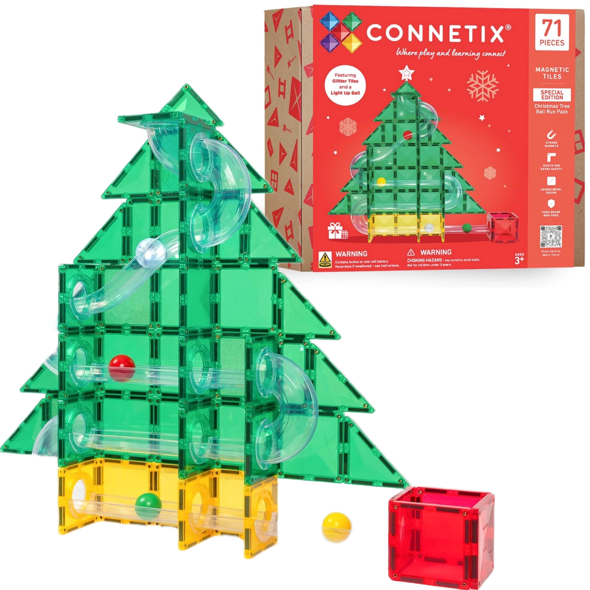 Das limitierte Weihnachtsset CONNETIX Christmas Tree Special Edition Ball Run Pack in leuchtenden, glitzernden Farben ist ideal für kreatives Bauen von 2D- und 3D-Modellen sowie schnellen Kugelbahnen. Dank der starken Neodym-Magnete ziehen sich die Teile zuverlässig von allen Seiten an und die Konstruktionen behalten ihre Form. Das charakteristische „Klicken“ beim Verbinden sorgt für sofortige Zufriedenheit und motiviert zu weiteren Experimenten.