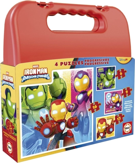 Dieses Set progressiver Puzzles ist ideal für Kinder, die das Puzzeln lernen und sich Schritt für Schritt verbessern möchten. Die vier Bilder mit dem Helden IRON MAN haben eine unterschiedliche Anzahl an Teilen, sodass jede und jeder die passende Herausforderung und Freude am Zusammensetzen findet. Dank der kleineren Teilchen bei den anspruchsvolleren Motiven machen Kinder ganz natürlich Fortschritte.