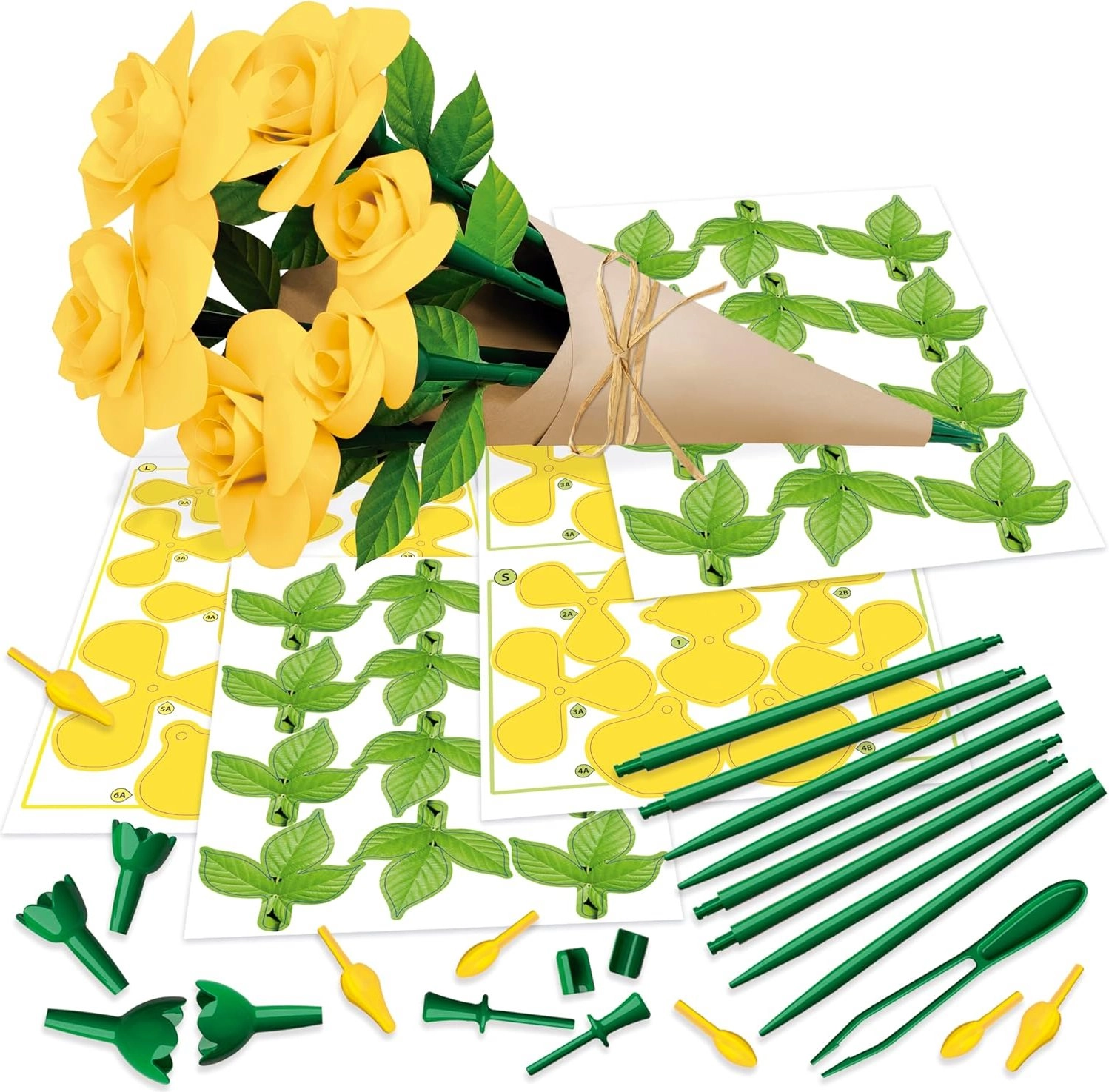 Jedes Teil ist präzise vorgeschnitten und beidseitig bedruckt, sodass der fertige Strauß aus jedem Blickwinkel realistisch wirkt. Dank der beiliegenden Kunststoffkomponenten ist der Aufbau intuitiv und stabil. Ideal für DIY-Fans, Dekoliebhaber und als originelles Geschenk.