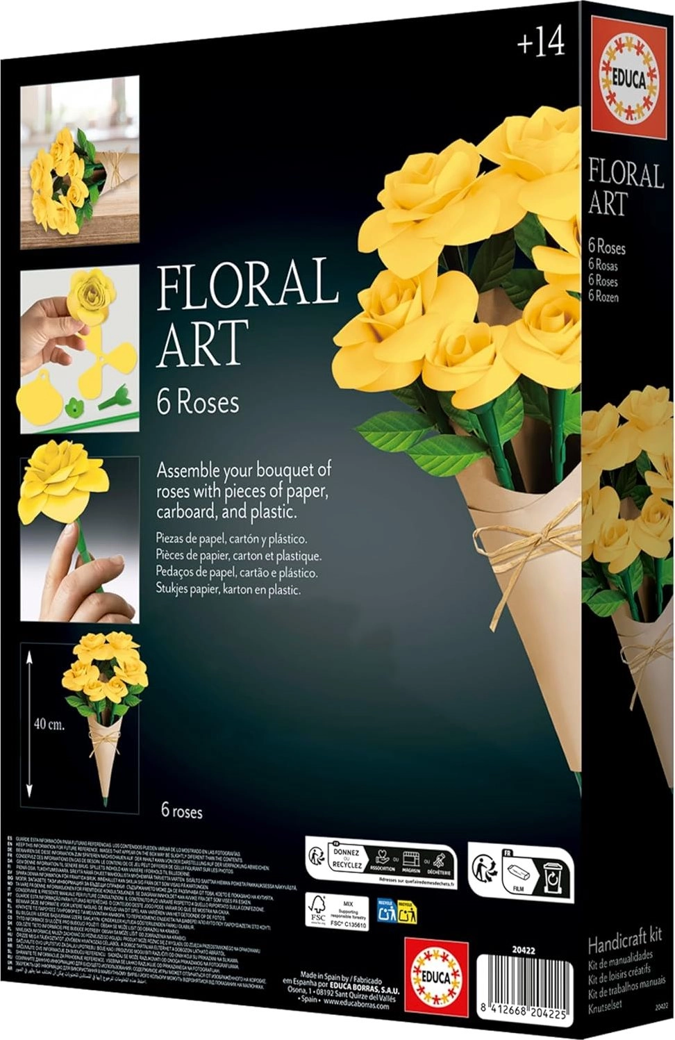 Kreieren Sie Ihre eigene Blumendekoration mit dem 3D-Puzzle EDUCA Floral Art – gelbe Rosen. Dieses Set verbindet entspannendes Gestalten mit modernem Design und verwandelt ruhige Momente in ein schönes Ergebnis, das Ihr Zuhause schmückt. Alles ist für eine einfache Montage ohne Unordnung und komplizierte Hilfsmittel vorbereitet.