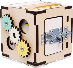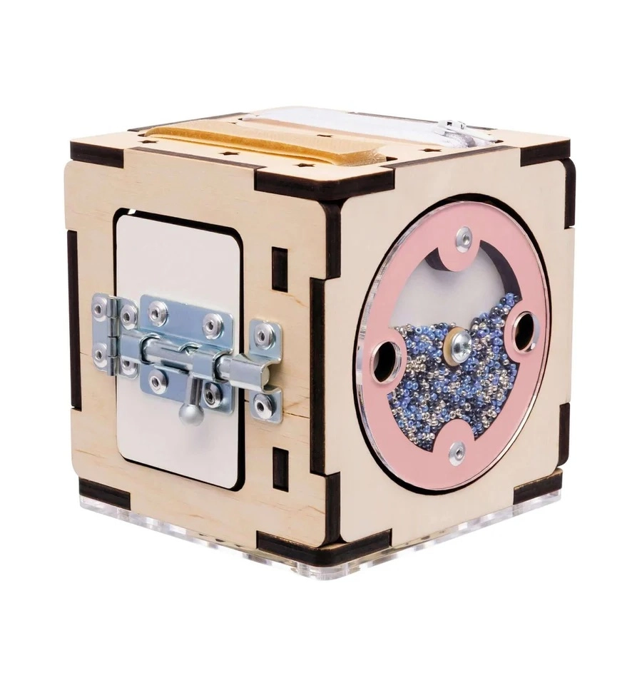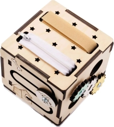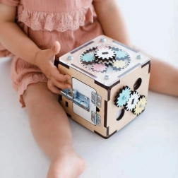 Dieser Montessori-Würfel besteht aus hochwertigem Birkensperrholz und ist mit sicheren, wasserbasierten Farben behandelt. Abgerundete Kanten, eine stabile Konstruktion und durchdachte mechanische Elemente fördern die Hand-Auge-Koordination, Geduld und Neugier. Dank der kompakten Maße von 11 × 11 × 11 cm kann das Kind ihn überallhin mitnehmen.