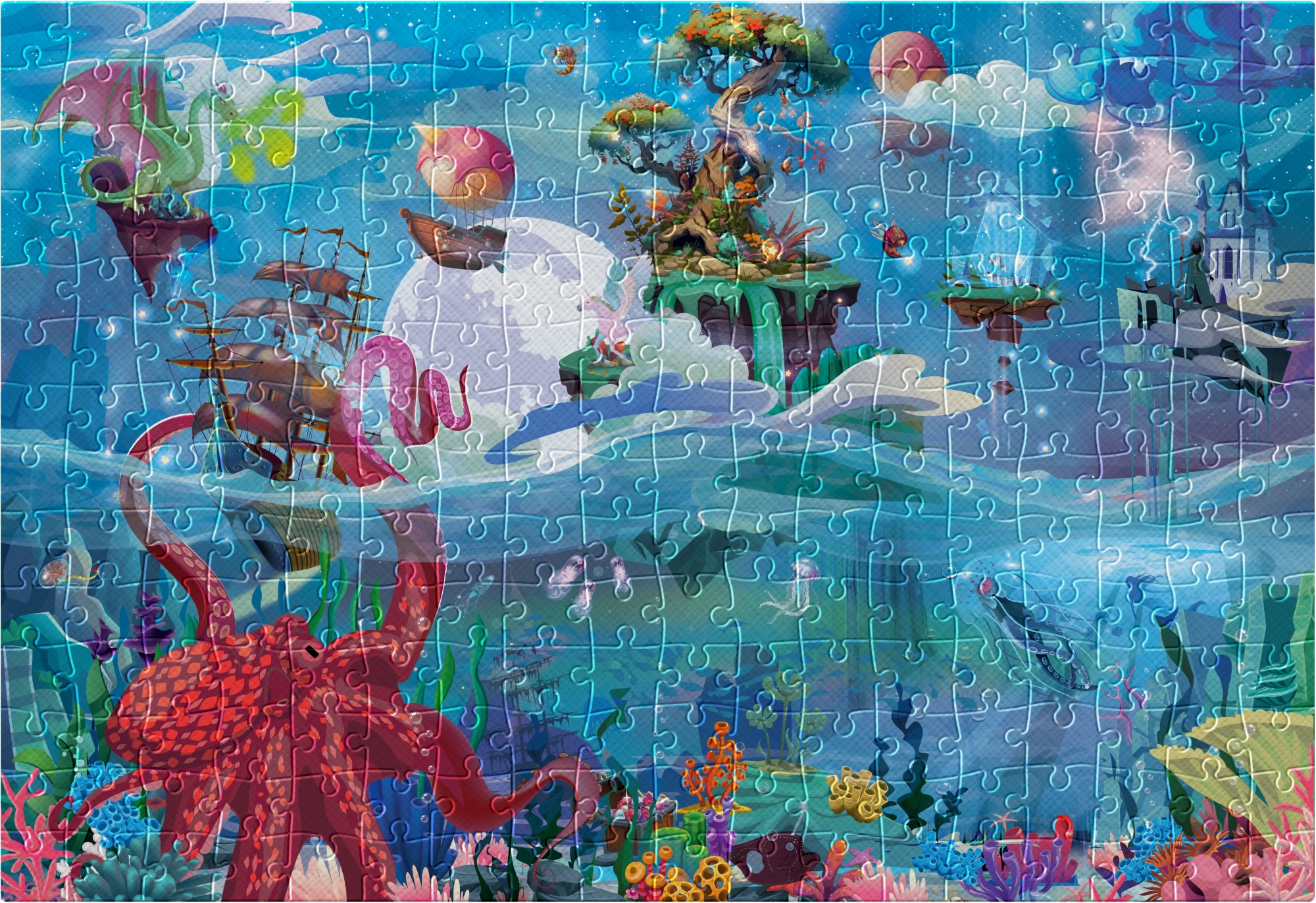 Tauchen Sie in eine märchenhafte Welt ein und genießen Sie angenehme Momente beim Zusammensetzen der hochwertigen Interdruk-Puzzles. Das Motiv Wunderreich besticht durch dekorative Gestaltung und einen speziellen metallischen Glanz, wodurch das fertige Bild besonders effektvoll wirkt.