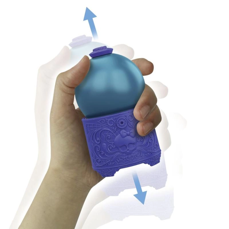 Dieses spielerische Set bietet ein einzigartiges Unboxing-Erlebnis: Bereiten Sie den Trank in drei Schritten zu – Wasser in die Kugel gießen, schütteln und zusehen, wie sich der magische Trank bildet. Drehen Sie anschließend die Kugel um, und die kleine Puppe erscheint aus der beliebten MONSTER HIGH Welt. Dank der kompakten Größe ideal zum Spielen zu Hause und unterwegs.