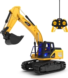 Dieser detailgetreue RC-Bagger imitiert echte Baumaschinen. Das robuste Kettenfahrwerk gewährleistet Stabilität und gute Geländegängigkeit, während der drehbare Oberwagen und die funktionale Schaufel realistische Ladebewegungen ermöglichen. Ein Lichteffekt in der Kabine erhöht die Authentizität beim Spielen in der Dämmerung.