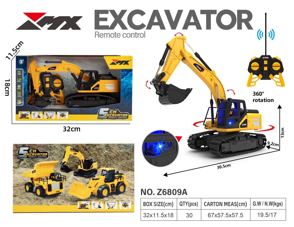 Die Steuerung ist intuitiv: Vorwärts/Rückwärtsfahren, 360°‑Drehung des Unterwagens, Heben und Senken der Schaufel – alles über den 5‑Kanal‑Sender auf 40 MHz. Die Stromversorgung übernimmt eine wiederaufladbare 3,7‑V‑Li‑Ion‑Batterie mit einfachem USB‑Laden. Das Modell ist ideal für Kinder ab 3 Jahren, begeistert aber auch Fans und Sammler von Bautechnik.