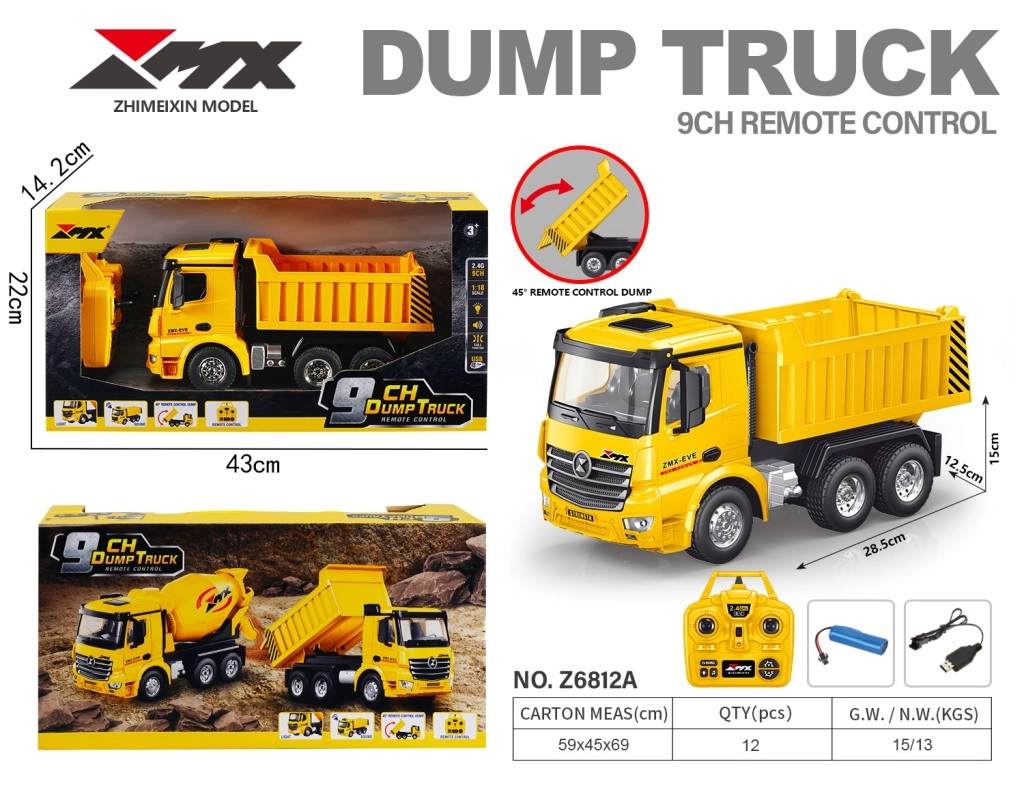 Die 2,4‑GHz‑Fernsteuerung gewährleistet eine stabile Signalübertragung mit einer Reichweite von bis zu 30 m und 9 Kanälen für volle Kontrolle – Vorwärts/rückwärts, Lenken sowie Aktivieren des Kippvorgangs. Integrierte Licht- und Soundeffekte verstärken das Erlebnis und machen das Modell sowohl für Einsteiger als auch für erfahrene RC‑Fans attraktiv.