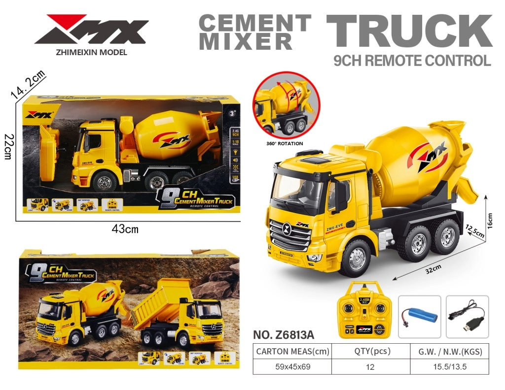 Der ergonomische Controller bietet 9 Kanäle für präzise Manöver: Vorwärts/Rückwärtsfahren, Lenken, Aktivierung der Trommel, Lichteffekte sowie einen automatischen Demo-Modus. Die sichere Geschwindigkeit von 2–3 km/h ist ideal für Spielspaß drinnen und draußen. Die Stromversorgung des Fahrzeugs übernimmt ein wiederaufladbarer 3,7‑V-Akku, der über das mitgelieferte USB-Kabel geladen wird.