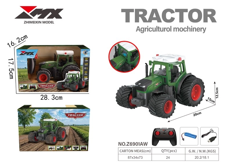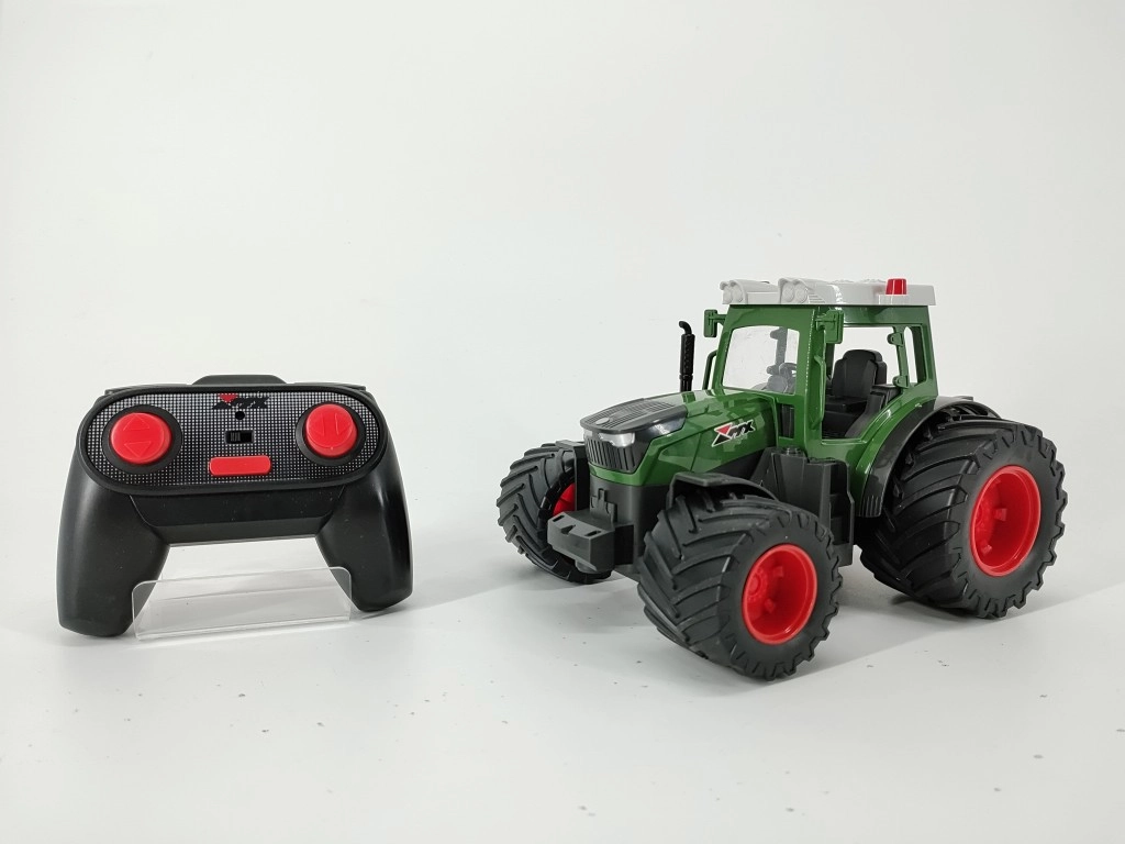 Dieser RC-Landwirtschaftstraktor begeistert Kinder und Modellfans durch seine robuste Konstruktion und den authentischen Look. Die Kombination aus grüner und roter Farbe, breite Reifen für Stabilität sowie silbernes Dach mit roten Rundumleuchten und Scheinwerfern vermitteln das Bild einer echten Maschine. Öffnende Kabinentüren und Details wie das Auspuffrohr unterstreichen den realistischen Eindruck.