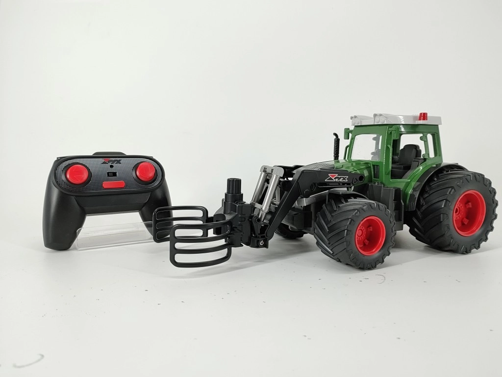 Der vordere Laderarm mit Greifer ermöglicht das einfache Greifen und Bewegen von Ballen, sodass Kinder echte Landwirtschaftsarbeiten nachspielen können. Die Steuerung erfolgt über einen ergonomischen 2,4-GHz-Sender mit sechs Kanälen für sanftes Fahren und Lenken, mit einer Reichweite von bis zu 30 Metern. Der wiederaufladbare 3,7-V-Li-Ion-Akku wird bequem und sparsam per USB geladen.