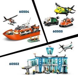 Enthalten sind 4 Minifiguren – Pilot, zwei Mitglieder der Küstenwache und ein Zivilist – plus eine Rettungskapsel und eine Hai-Figur. Umfangreiches Zubehör (Fernglas, Funkgerät, Erste-Hilfe-Kasten) fördert Kreativität, Teamspiel und die Entwicklung der Feinmotorik. Beim Bauen hilft die App LEGO Builder mit interaktiven 3D-Anleitungen.