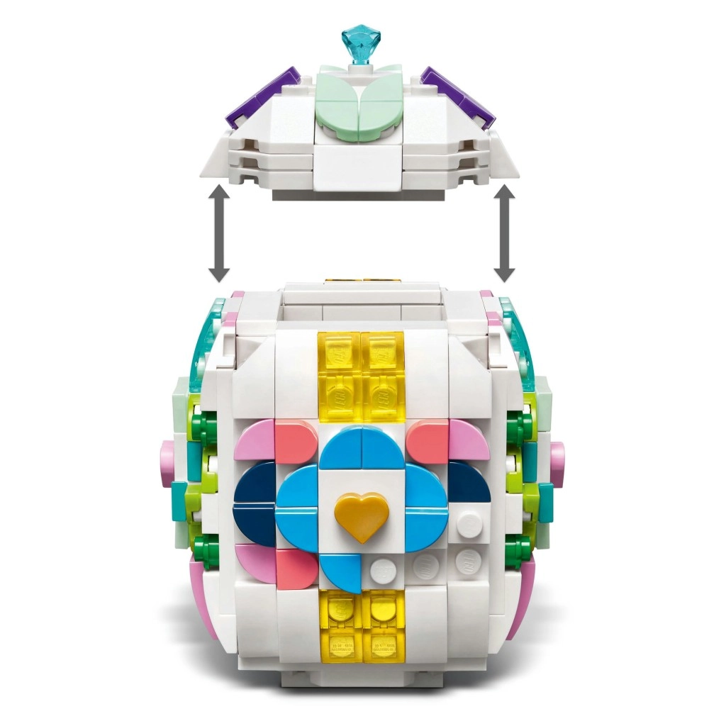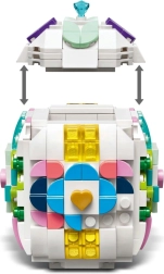 Dieses elegante weiße LEGO-Ei aus Steinen ist etwa 10 cm hoch und 7,9 cm breit – die ideale Größe für Regal, Tisch oder österliche Arrangements. Dank der umfangreichen Auswahl an pastellfarbenen und transparenten Elementen (Herzchen, Blätter, „Diamanten“) gestalten Sie im Handumdrehen ein originelles Muster, das sich jederzeit variieren lässt.