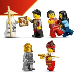 Erlebe Nostalgie mit der Jubiläumsausgabe LEGO NINJAGO Schmiede der Vier Waffen, inspiriert von der Pilotfolge der beliebten Serie. Das aufwendig gestaltete Modell mit traditionellem dunklem Dach, roten und goldenen Verzierungen sowie steinernem Fundament wird durch die aufklappbare Konstruktion lebendig, die Schlafzimmer, Schmiede und weitere Ecken voller thematischer Accessoires offenbart.