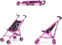 Der Buggy klappt sich wie ein echter Regenschirmbuggy zusammen – in wenigen Sekunden auf kompakte Maße für bequeme Aufbewahrung oder Mitnahme. Die Sicherheitsverriegelung verhindert ein unbeabsichtigtes Zusammenklappen beim Spielen und die Gurte halten die Puppe sicher an Ort und Stelle.