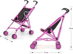 Doppelte Plastikräder für sanftes Fahren und eine Sicherung gegen unbeabsichtigtes Zusammenklappen. Die Gurte halten die Puppe fest an ihrem Platz.