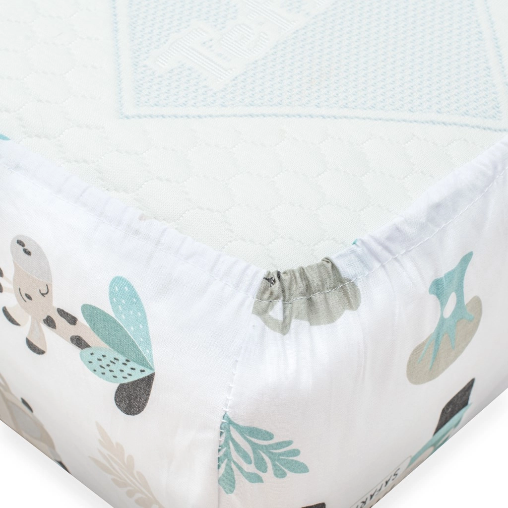 Praktisches Bettlaken für das Kinderbett aus hochwertiger glatter Baumwolle, das Ihrem Baby die ganze Nacht über Komfort bietet. Dank des rundum eingearbeiteten Gummizugs passt es sich fest der Matratze an, rutscht nicht und bleibt perfekt gespannt. Das zarte Kindermotiv Safari macht jedes Kinderbett gemütlicher.