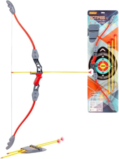 Bogen, 3 Pfeile mit Saugnäpfen, Köcher/Halter, ausschneidbare Zielscheibe