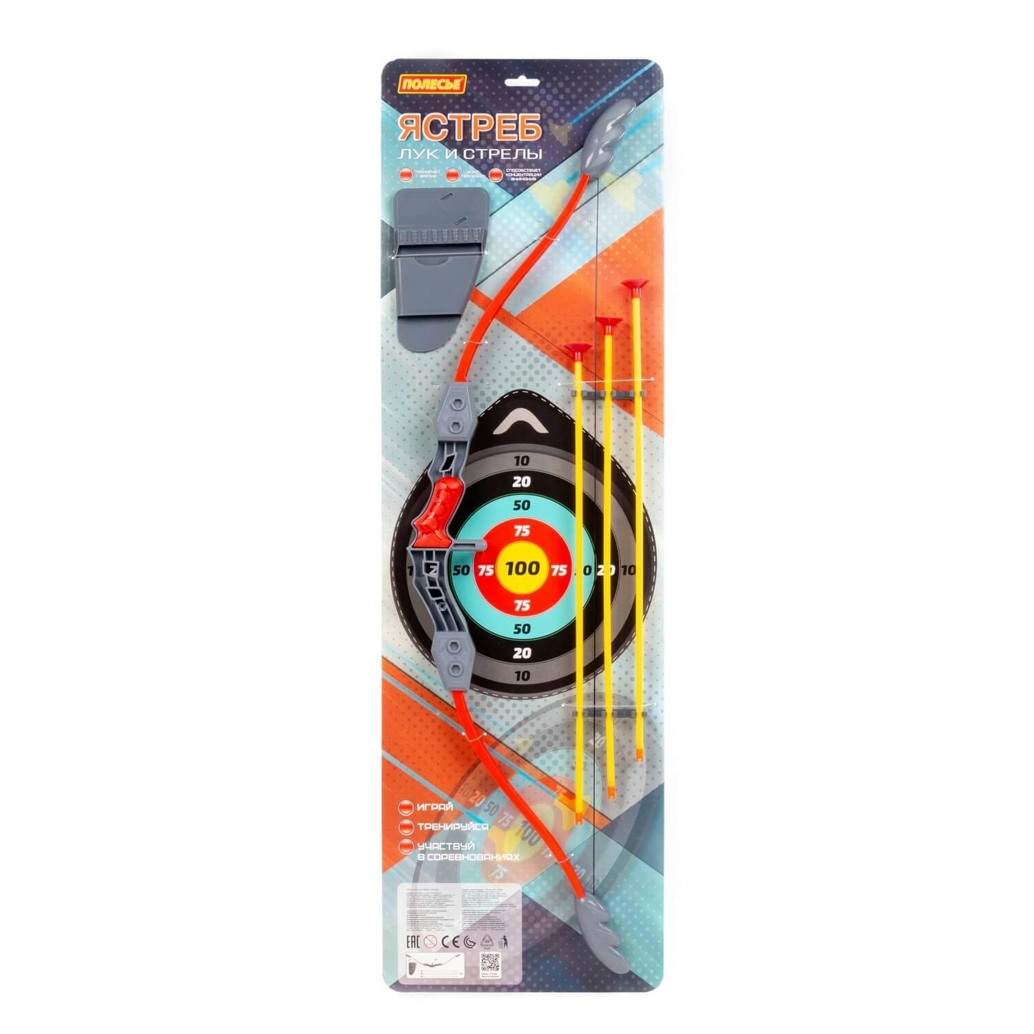 • Komplett-Set: Bogen, 3 Pfeile, Köcher und ausschneidbare Zielscheibe
