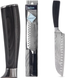 Der Griff aus Pakka-Holz ist feuchtigkeits-, wärme- und chemikalienbeständig; seine ergonomische Form sorgt für sicheren Halt und maximale Kontrolle. Das Messer ist eine universelle Wahl für den Alltag – von feinem Aufschneiden bis zum Hacken von Kräutern oder Portionierarbeiten.