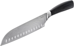 Das Santokumesser vereint japanische Inspiration mit europäischen Verarbeitungsstandards. Der 67-lagige Damaststahl bietet außergewöhnliche Härte, Widerstandsfähigkeit und langanhaltende Schärfe, während das flache Klingenprofil präzise Schnitte und eine schnelle Zubereitung erleichtert. Dank der Granton-Aushohlungen haften Scheiben nicht an der Klinge – das Schneiden bleibt geschmeidig.