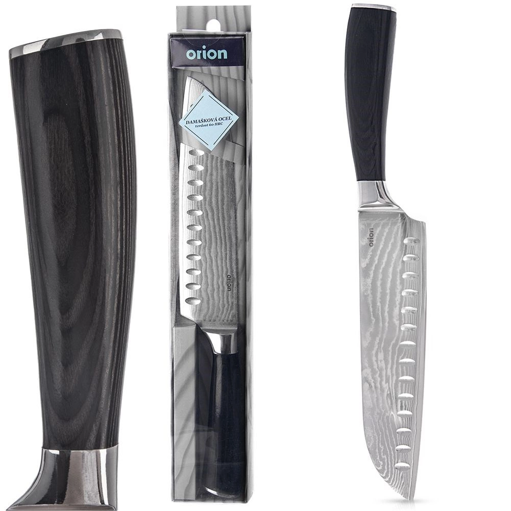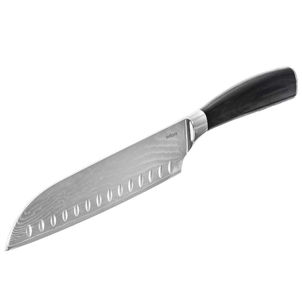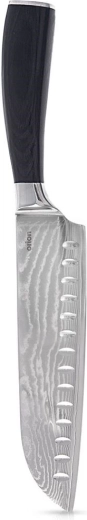 Präzises Santokumesser mit einer Gesamtlänge von 31 cm und einer Klingenlänge von 18 cm aus 67-lagigem Damaststahl für außergewöhnliche Schärfe und Langlebigkeit. Der ergonomische Pakka-Holzgriff liegt hervorragend in der Hand, Granton-Schliffe auf der Klinge minimieren das Anhaften von Lebensmitteln. Ideal zum Schneiden, Hacken und Scheiben von Obst, Gemüse und Fleisch in der heimischen wie auch in der professionellen Küche.