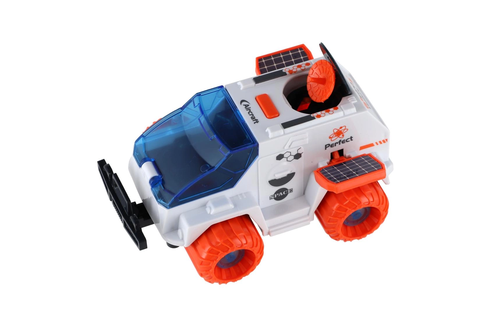 Das Fahrzeugdesign überzeugt mit einem blau getönten Frontschild; Details wie Solarpaneele und eine Radarantenne fördern die Fantasie und trainieren die Feinmotorik. Das Spielzeug besteht aus robustem Kunststoff und eignet sich hervorragend für alleiniges oder gemeinsames Spielen.