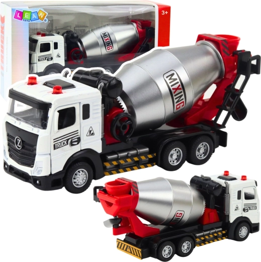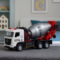 Das Haupt-Highlight ist die drehbare Mischtrommel, mit der Kinder das reale Mischen von Beton nachspielen. Für noch mehr Erlebnis sorgen Licht- und Soundeffekte, die während des Spiels aktiviert werden. Dank der beiliegenden AG13-Batterien ist der Betonmischer sofort einsatzbereit.