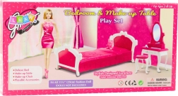 Schaffen Sie Ihrer Puppe ein gemütliches Schlafzimmer mit funktionaler Ausstattung. Das elegante Bett mit verziertem Kopfteil und der moderne Schminktisch mit ovalem Spiegel laden zum Kämmen, Schminken und zur Pflege des Aussehens ein. Der leichte Hocker ermöglicht es, die Puppe bequem am Tisch zu platzieren.