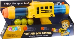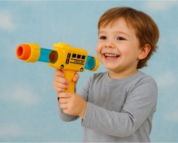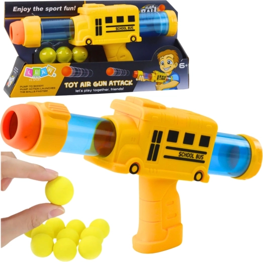 Diese originelle Pistole im Schulbus-Stil überzeugt durch intensive Farben und ein attraktives Design, das Kinder zu Bewegung und kreativem Spiel motiviert. Das Schießen erfolgt mit weichen Schaumstoffkugeln, die schonend sind und sich auch für den Innenraum eignen.