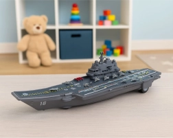 Dieser detailreich gestaltete Flugzeugträger liefert Kindern actiongeladene Seemissionen. Nach dem Einschalten leuchtet er und gibt Geräusche wieder, was die Spielatmosphäre intensiviert. Dank des Schwungradantriebs fährt er nach einem leichten Anschub selbstständig los – für noch mehr Spaß und Realismus.