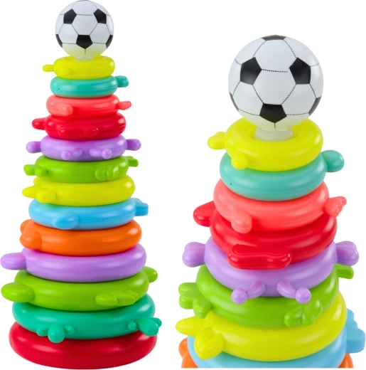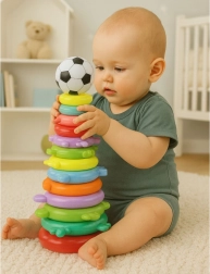 Diese Lern-Stapelpyramide bietet cleveren Spielspaß für die Kleinsten. Das Kind stapelt bunte Ringe der Größe nach auf einen Mittelstift und setzt zum Schluss den Ball auf, der zu weiteren Versuchen motiviert. Das Spielzeug unterstützt die Hand-Auge-Koordination, die Entwicklung der Feinmotorik und das logische Denken.