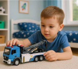 Der funktionale Ausleger mit Haken ermöglicht das Anheben und Abschleppen weiterer Spielzeugautos, sodass Kinder verschiedenste Verkehrsszenarien nachspielen können. Das Spiel mit dem Abschleppwagen fördert Feinmotorik, logisches Denken und Vorstellungsvermögen.