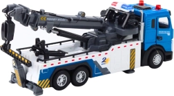 Dieser detailreich gestaltete Abschlepp-Lkw bringt Kindern ein authentisches Erlebnis aus der Welt des Straßendienstes. Die robuste Konstruktion, leuchtende Farben und die Metallkabine sorgen für lange Spielfreude im Alltag. Öffnende Türen, Licht und Sound verstärken den Eindruck eines echten Einsatzes auf der Straße.