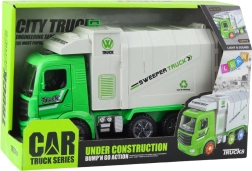 Dieser grün-weiße Müllwagen begeistert alle kleinen Fans kommunaler Fahrzeuge. Dank realistischer Optik und funktionaler Details können Kinder spielend leicht Stadtreinigung, Sortieren und Müllabfuhr nachspielen. Der automatische Fahrmechanismus ändert nach dem Kontakt mit einem Hindernis die Richtung, sodass der Spielspaß nicht unterbrochen wird.