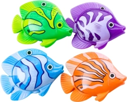 Das Set enthält vier farbenfrohe Fische, die gut schwimmen und im Wasser leicht zu sehen sind – ideal für Spiele mit Tempo und Präzision.