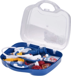 Enthalten sind beliebte Utensilien wie ein Stethoskop mit Licht und Sound, Thermometer, Spritze, Otoskop/Taschenlampe, Reflexhammer sowie ein Herzmonitor. Der leichte Koffer hält alles übersichtlich organisiert und ist leicht zu transportieren.