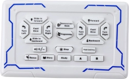 Vorwärts/rückwärts, links/rechts, Geschwindigkeitswahl, Stopp, Programm, Demo, Tanz, Geschichte, Lernen – alles auf einer übersichtlichen Fernbedienung für bequemes Spielen.