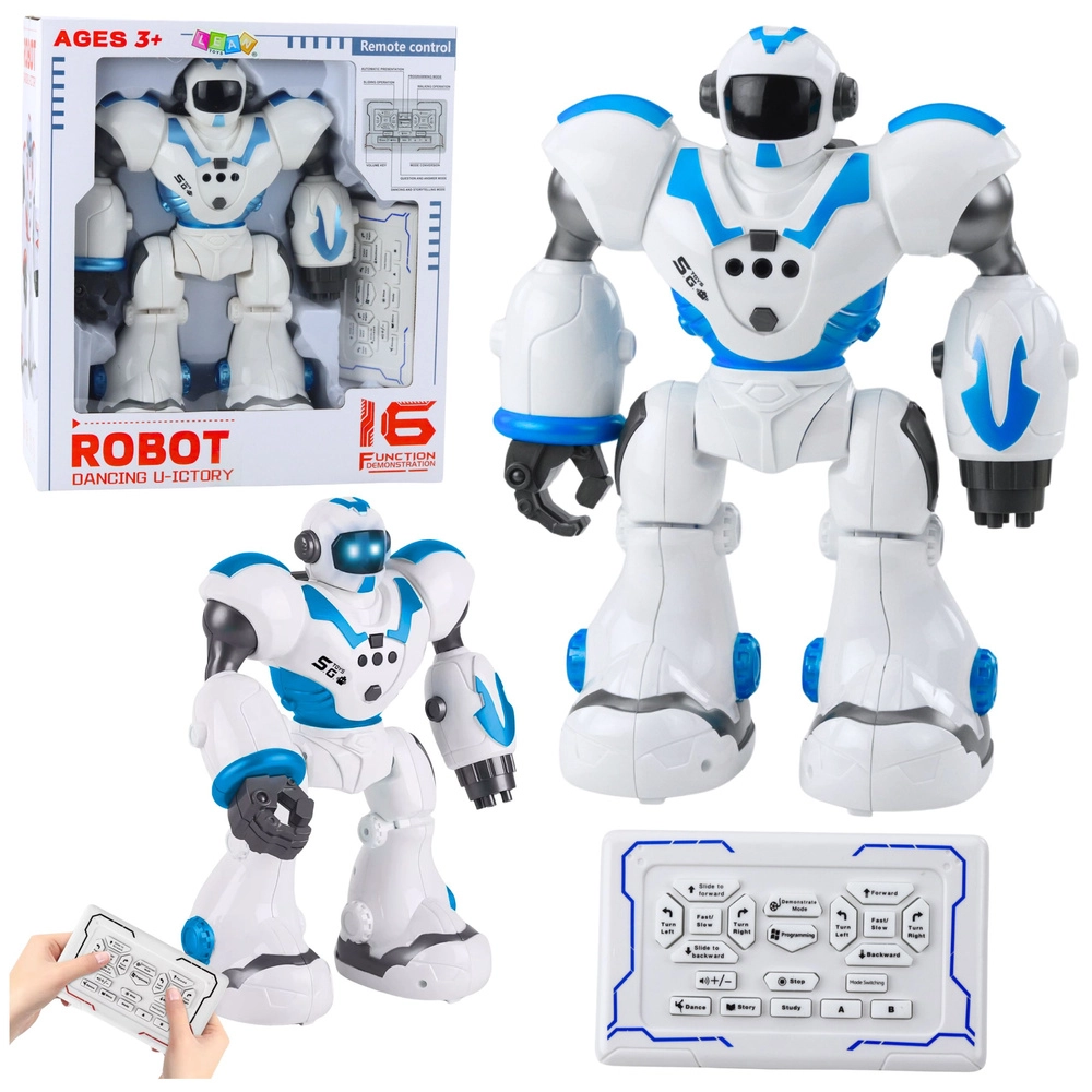 Der Roboter besteht aus hochwertigem, sicherem Kunststoff und wird mit einer 2,4‑GHz‑Fernbedienung gesteuert. Der Demonstrationsmodus zeigt alles, was er kann, während das Programmieren logisches Denken, Planung und Kreativität fördert. Sound- und Lichteffekte, Fragen und Antworten sowie das Erzählen von Geschichten fördern Sprache, Vorstellungskraft und Konzentration.