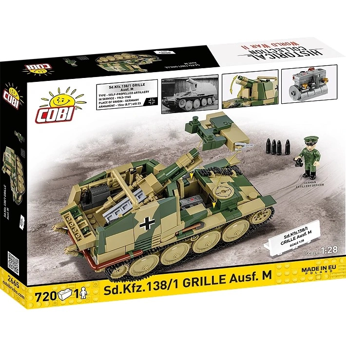 Entdecken Sie die legendäre „Grille“, eine Selbstfahrlafette auf Basis des Panzer 38(t)-Fahrgestells, präzise umgesetzt aus COBI-Bausteinen. Exakte Formteile mit hochwertigen Drucken, Tarnmuster, Namensschild und authentische Proportionen machen das Modell zu einem attraktiven Sammlerstück und einer hervorragenden edukativen Baubox.