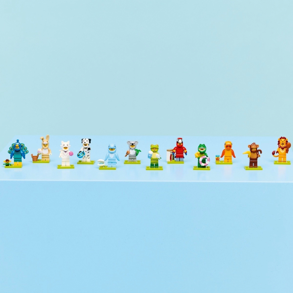 In der Serie finden Sie Charaktere in Kostümen: Papagei, Löwe, Frosch, Krokodil, Dalmatiner, Goldfisch, niedliches Kaninchen, Pfau, flauschige Katze, Koala, Delfin und Affe. Jede Figur ist in einem versiegelten Mystery-Box verborgen, sodass die Überraschung garantiert ist – sammeln Sie alle 12 Minifiguren und erweitern Sie Ihre LEGO-Ausstellung oder Spielwelt.