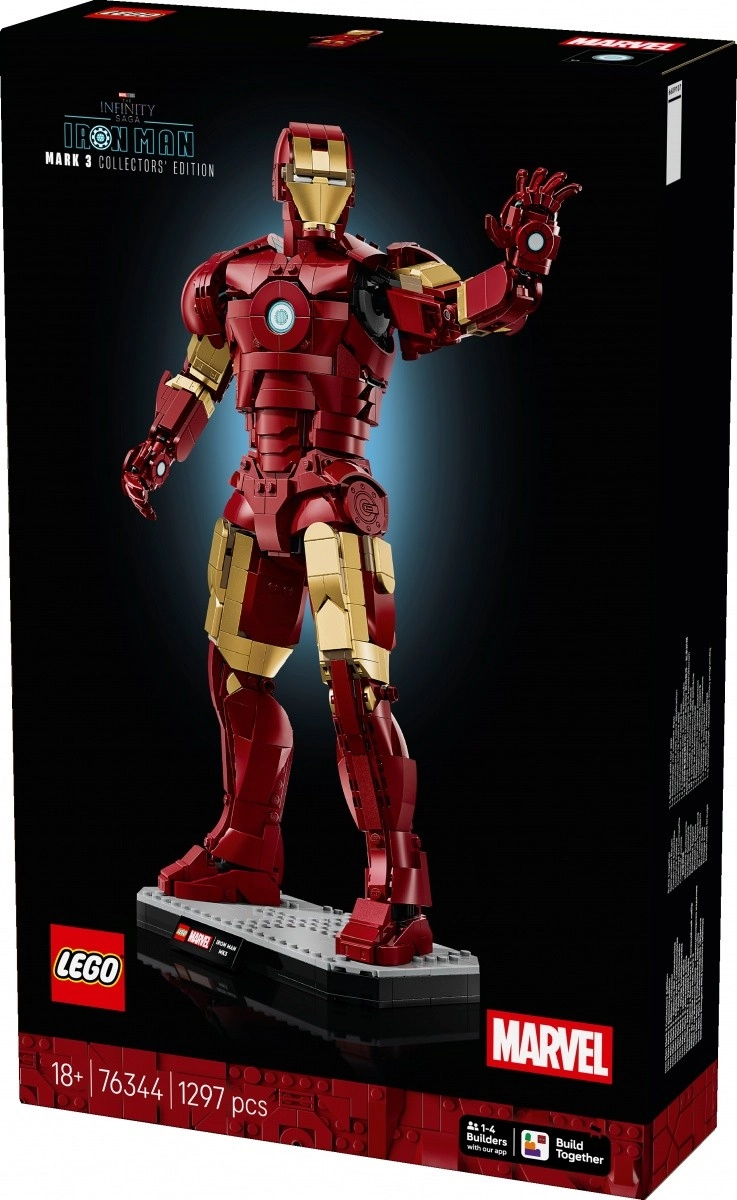 Dank Gelenken an Schlüsselpunkten lässt sich die Figur in dynamische Posen bringen – vom heroischen Stand bis zur actionreichen Vorwärtsneigung. Ergänzt wird das Set durch eine Iron-Man-Minifigur Mark 3 sowie die Möglichkeit, die LEGO Builder App für eine übersichtliche Bauanleitung zu nutzen.