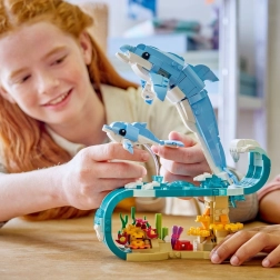 Das Set enthält 542 Teile und bietet Kindern wie erwachsenen Meeresfans die Möglichkeit zu bauen, zu entdecken und auszustellen. Baue einen erwachsenen Delfin mit Jungtier, die elegant auf einer Welle über einem bunten Korallenriff „schweben“, oder baue zum Seepferdchen mit reich verziertem Sockel und beweglicher Muschel um – oder zur Krabbe mit Qualle und Meeresflora.