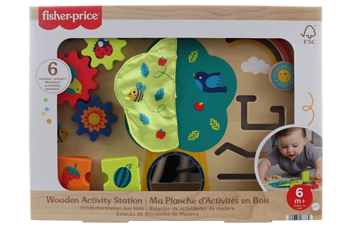 Das interaktive Holz-Spielbrett Fisher-Price Garten bietet 6 Sinnesaktivitäten für die Kleinsten. Kinder trainieren Feinmotorik, sensorische Wahrnehmung und logisches Denken. Hergestellt aus FSC-zertifiziertem Holz und mit ungiftigen wasserbasierten Farben lackiert. Geeignet ab 6 Monaten.